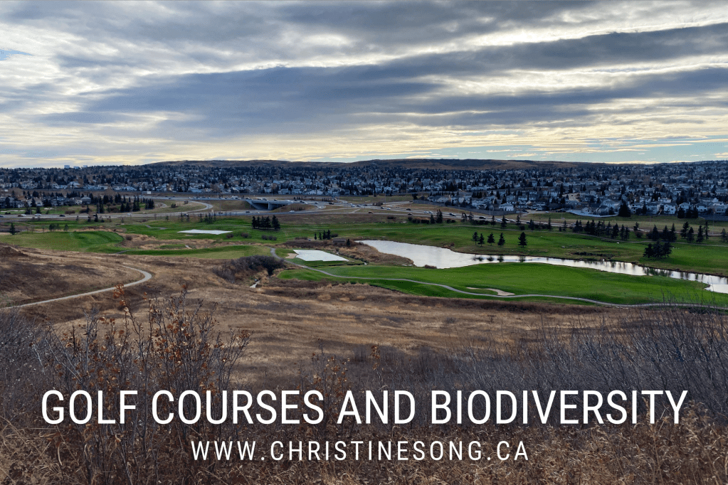 I took the above photo while walking my dog a couple of weeks ago. Do you notice anything interesting about the picture? The golf course is the only area that is still green. All vegetation outside the golf course has changed to brown since it is almost winter. My uncle is an avid golfer, so I promise that this blog post will not be bashing golf as a sport! Instead, I will discuss maintenance behind golf courses and methods that can help maintain biodiversity on golf courses. As with all my blog posts, I encourage open discussion, so please leave me a comment or email me if you would like to discuss more!